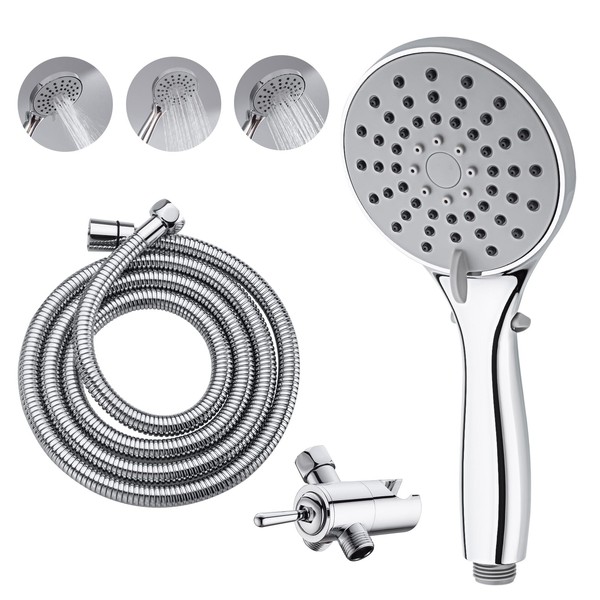 Shower Head with Handheld High Pressure 3 Spray Modes Water Saving Showerhead with 87" Stainless Hose and Adjustable Mount to Clean Tub, Clean Corner,Tile & Pets