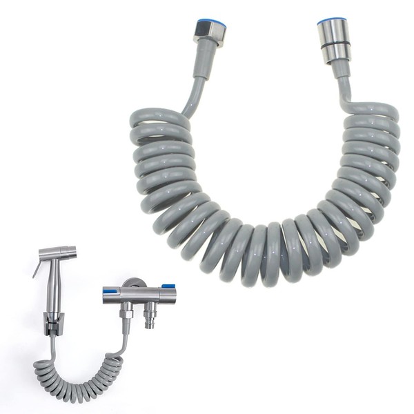 - 【Spiral Design】The spring loaded hose has good stretchability, the total length is 2m and can be freely stretched between 45cm and 1.5m. The retractable hose prevents it from falling on the floor and also saves water.