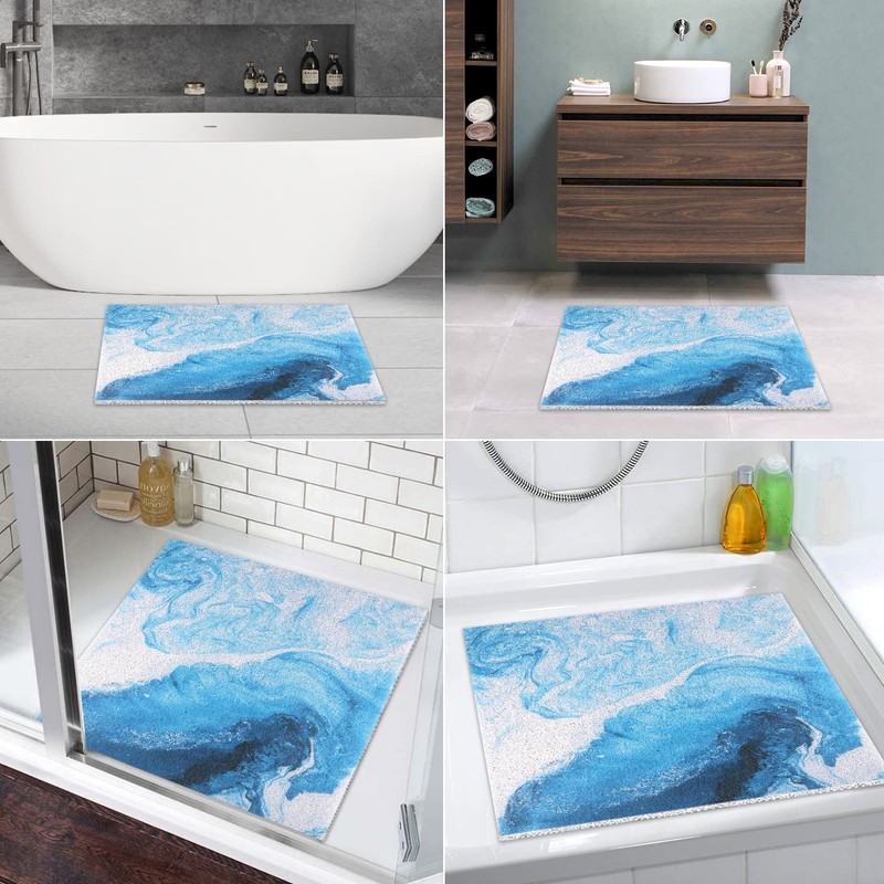 --The material of the non-slip bath mat is very soft, the loofah texture on the top gently massages the feet while providing cushioning and support when showering. The thickness is moderate, separates the hard and cold floor from your body and provides support, also wear resistant for service in any season.