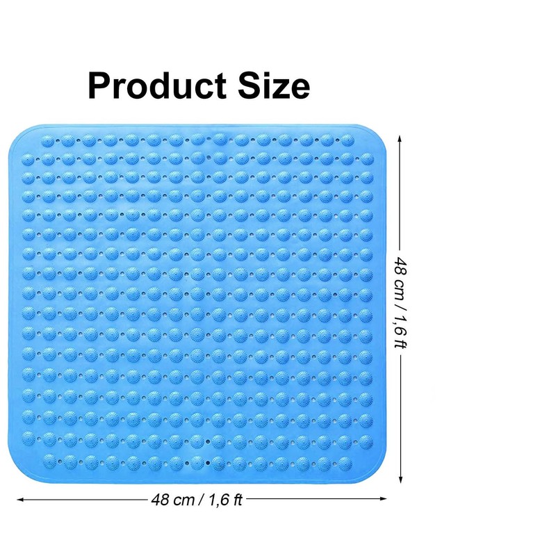 Shower mat, shower mat non-slip, massage shower mat non-slip,anti-slip mat with suction cups, for saunas, shower rooms, machine washable, square, Ocean Blue, 48 x 48 cm