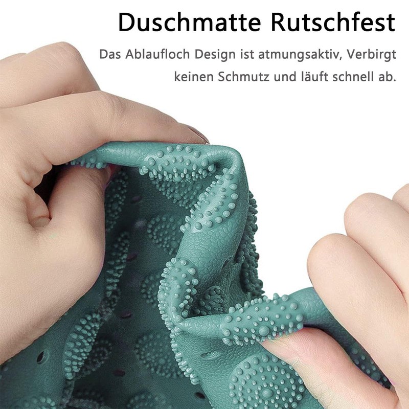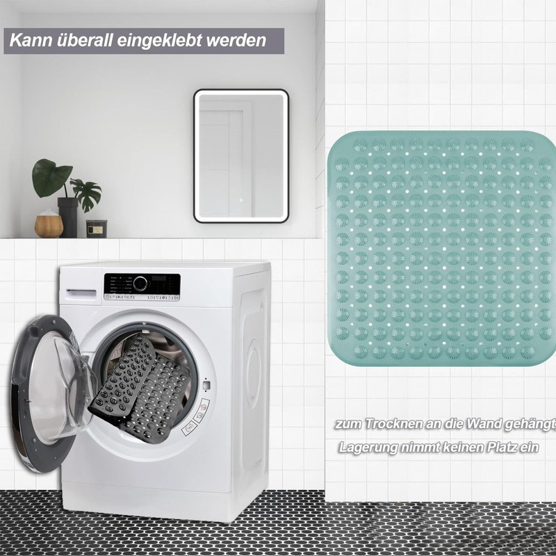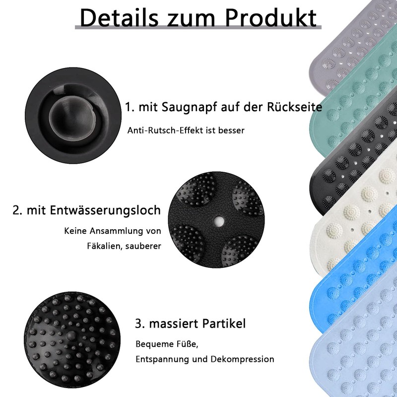 - Our shower mat with suction cups provides a firm grip on smooth surfaces, the textured surface is non-slip and massaging at the same time ideal for a relaxed shower or sauna.