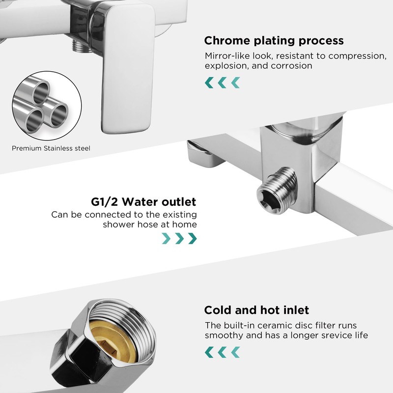 - 【Modern & Durable Design】The bathroom shower faucet with a chrome plated surface to give it a smooth and mirror-like look ,suitable for all kinds of bathroom, easily match the décor of your current shower and add a modern touch to your bathroom. Corrosion resistant and rustproof, well designed for maintenance and clean.