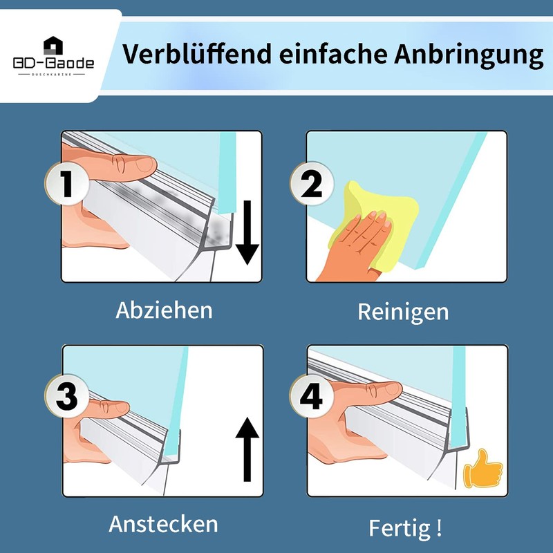 - Easy to install: it can be cut according to the size of the shower door, peel off the old shower door seal from the glass door and then press the new seal from bottom to top on the shower door to complete the installation. For easy installation of the bottom of the shower door seal, you can spray some soapy water on the glass.