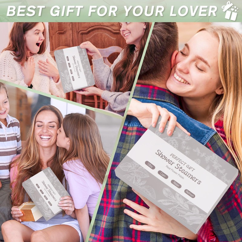 - The Perfect Self Care Gifts for Women:Unique Aromatherapy Bath Gift Set,The shower steamers arrive beautifully packaged, making them the perfect ready-to-gift on Christmas, birthdays, Valentine’s Day, Mother’s Day,bridal showers,spa day,or other special occasions. Treat your spouse, wife, mom, sister, or friends with a gift of relaxation and rejuvenation. Each bath bomb is individually wrapped for personalized gifting too!