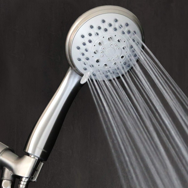 - MULTIPLE SETTINGS INCLUDING Power Spray - This ShowerMaxx shower head offers six adjustable spray depending on your mood. One setting is High Pressure for a revitalizing spray, a Light Mist for easy rinsing (this is great for babies), Power Spray to release muscle tension, High Pressure + Shampoo Spray which provides extra rinsing power, High Pressure + Power Spray, and lastly, an eco-friendly water saver trickle intended for lathering and shaving.