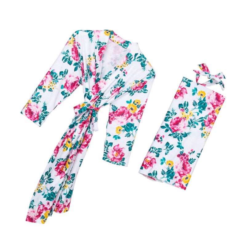 1 x women robe 1 x baby blanket 1 x baby headband