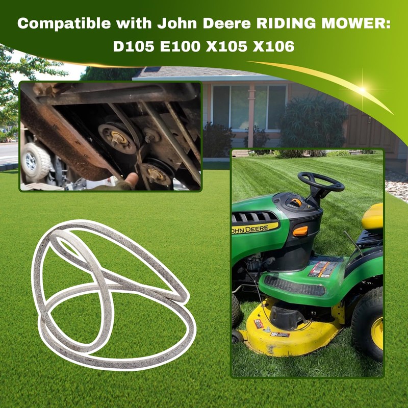 - Compatible Brands:Drive Belt GX24154 Compatible with John Deere RIDING MOWER: D105;John Deere RIDING MOWER: E100;John Deere RIDING MOWER: X105;John Deere RIDING MOWER: X106 Please check the model number and applicable brand when purchasing