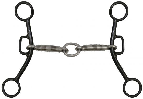 Showman Blued Steel Lifesaver Bit. This bit features 6 3/4" curved shank cheeks, 5" stainless steel wire wrapped mouth with a 1" lifesaver center ring.