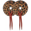 Showman Cheetah Print Leather Bit Guards. These bit guards measure 3" wide with leather strap closure. Guards are durable, soft and flexible to keep the horse comfortable and prevent the bit from rubbing.