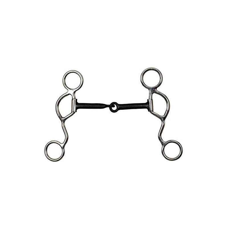 Showman Half Moon Cheek Snaffle Bit. This bit features 4 3/4" blued steel mouth and 6 1/4" cheeks. For an average full size horse.