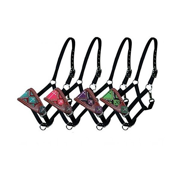 Showman Leather Bronc Beaded Nose Halter w/Cross Design & Rhinestone Conchos! New Horse TACK (Lime Green)