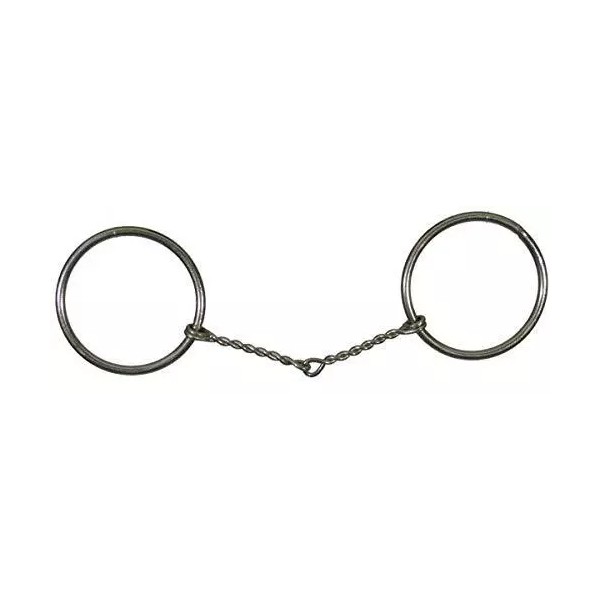 Showman Nickel Plated O-Ring Snaffle Bit. This bit features a 5" small twisted wire mouth and 3" O-rings. For an average full size horse.