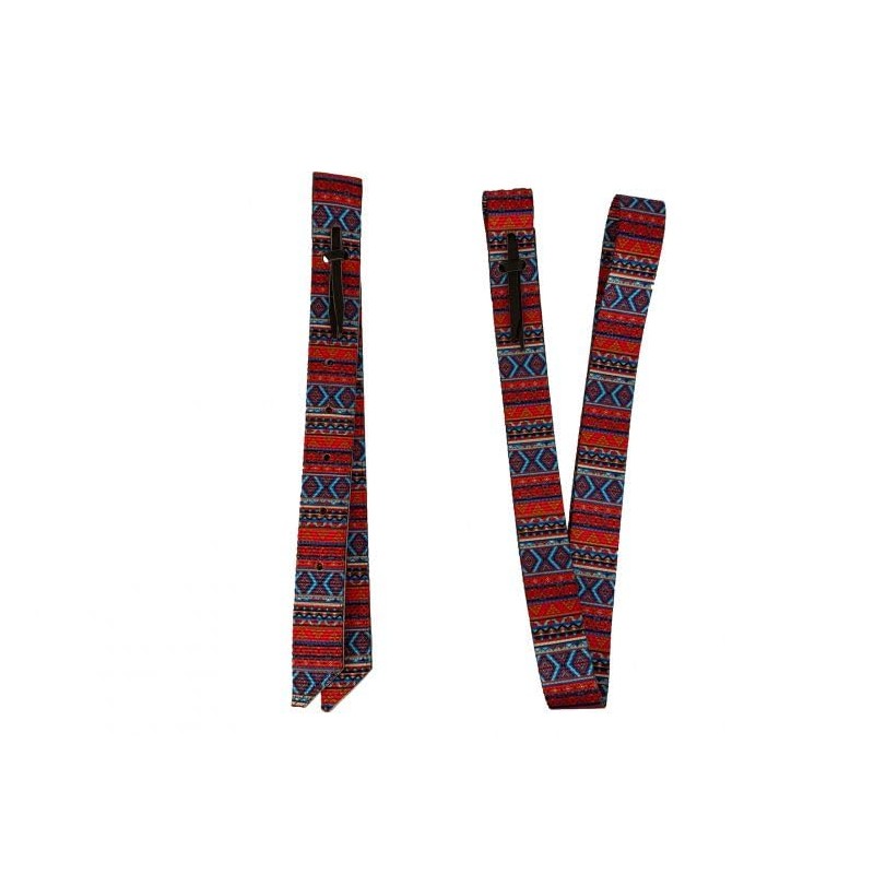 Showman Red Aztec Print Nylon Tie Strap & Off Billet Set