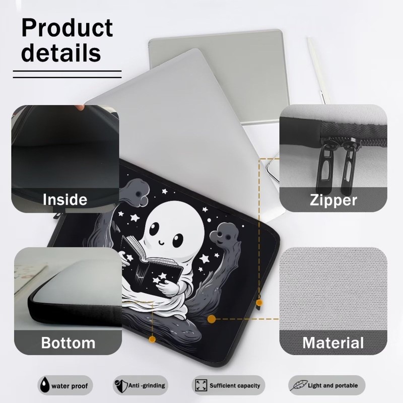 Showudesigns Cute Ghost Computer Sleeve for Women Men Slim Laptop Sleeve 15 inch Portable Accessory Bag Easy To Clean Computer Carrying Case Black Briefcase