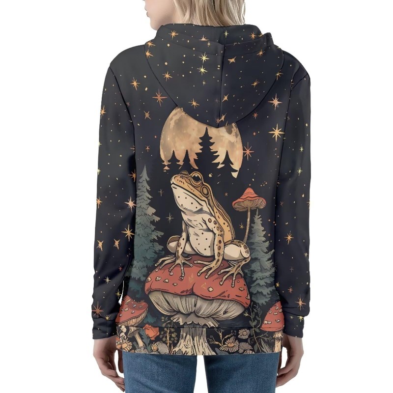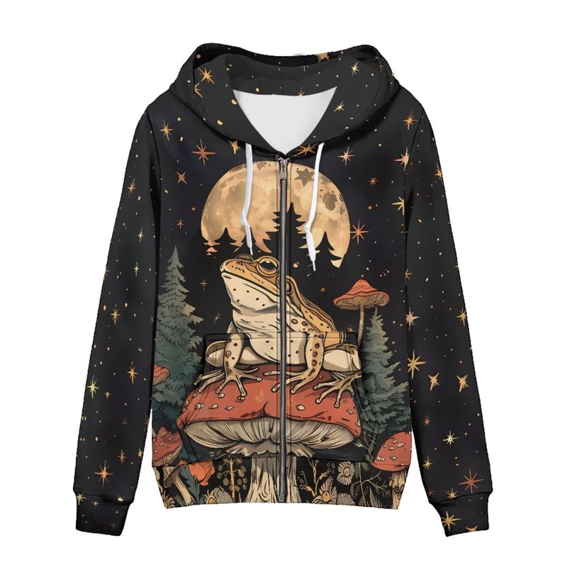 Showudesigns Mushroom Frog Zip Up Jackets for Women Hooded Sweatshirts Athletic Zipper Hoodies Plus Size 2XL Long-Sleeve Fall Clothes Lightweight Pullover Tops Y2K Outfits Activewear