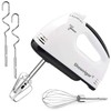 - One-Button Eject DesignThe accessories of the electric hand mixer can be quickly ejected with just one key. Tips: Must adjust the speed to gear 0 to eject the accessories. This is also a protection program. The food mixers hand held has a compact size so can be stored vertically on the table. The gorgeous white shape can be perfectly integrated with your kitchen decoration.