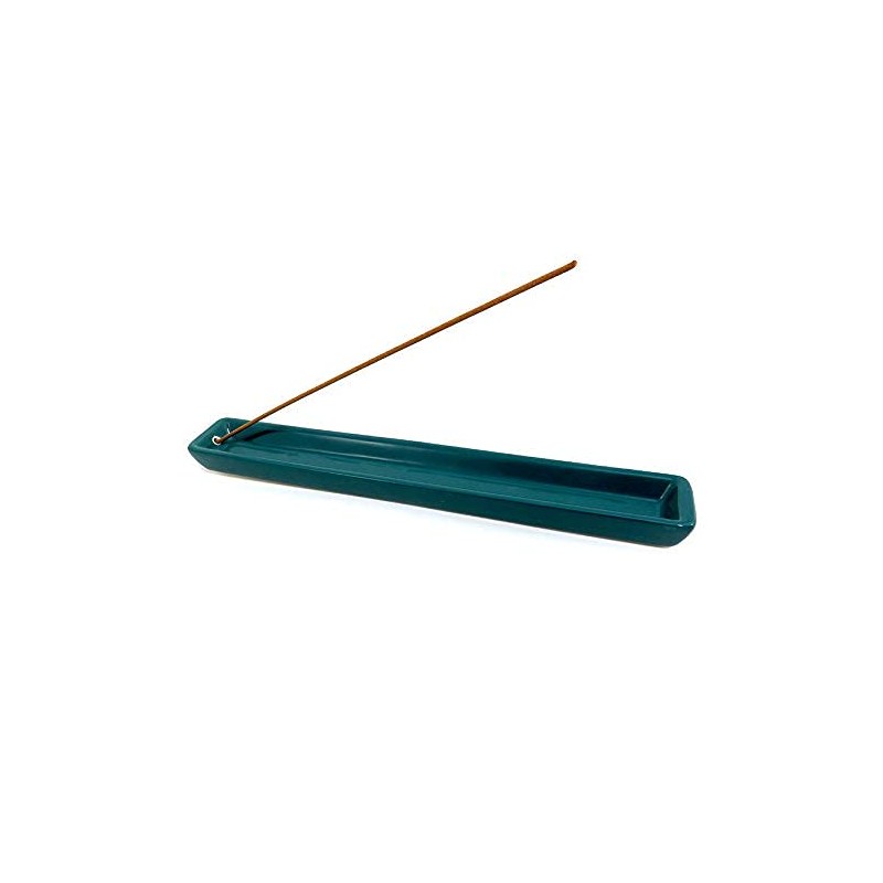 Our lustrous, new Blue-Green glaze calls to mind colorful desert turquoise, dusky tropical lagoons, or perhaps a butterfly's wings. Beautiful! Note: This holder does not fit our thicker, lengthier Zen Incense sticks. If you are purchasing Zen incense, please consider our Incense Bowls, Cups, and Round Holders.