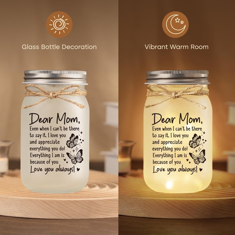 - 【Heartfelt Mom Gift】This Mason Jar Night Light is the perfect gift for birthdays, Mother’s Day, Christmas, or just because—for mom, mother, stepmom, or bonus mom. Thoughtfully designed with a touching message, it’s a heartfelt way to express gratitude and love for all she’s done