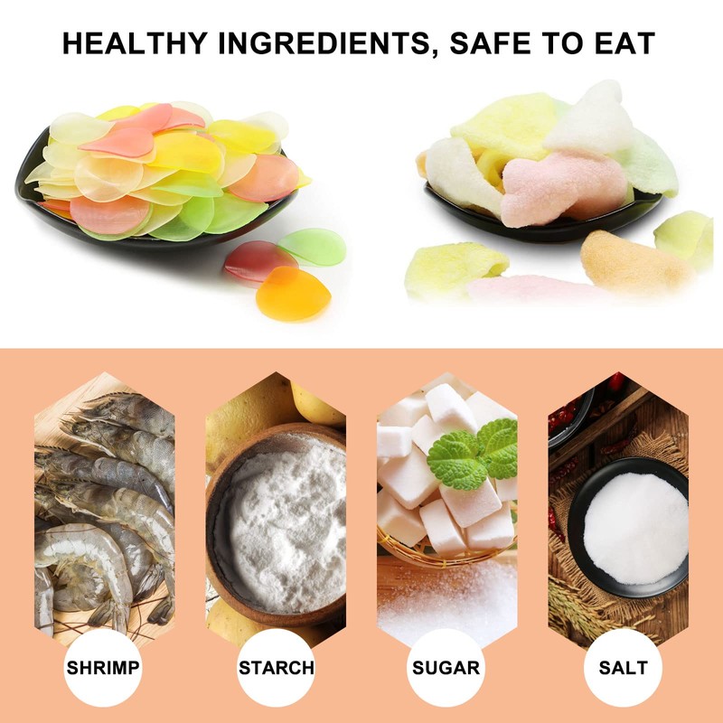 - 【Good preparation】Just put the shrimp chips uncooked into the pot after the oil is warm, and the fresh hot fries will expand and creak in a few seconds, then take out and enjoy. Even if you are a novice who cannot cook, you can also make delicious tidbits crackers.