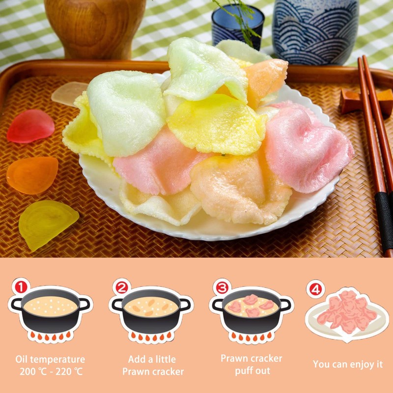 - 【Good storage】The shelf life is 24 months. Please store the shrimp crackers uncooked in a cool, ventilated and dry place. Due to different production habits, the date on the bottom of the shrimp slice is the date of production, so please feel free to eat!