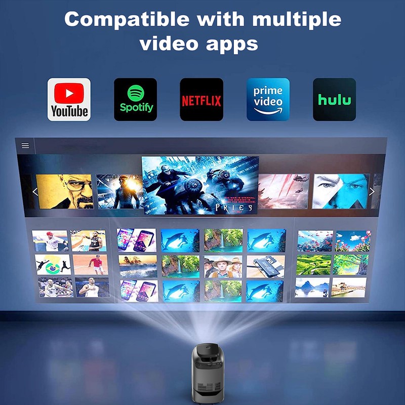 - 【Projector With WIFI and Bluetooth 】Supports wireless screen mirroring for IOS, Android, and Windows devices. With 5GHz Wi-Fi technology, you can easily display the screen of your devices without extra adapters or apps. (Note: Netflix, Amazon Prime Video, Hulu, and some similar apps do NOT support screen mirroring due to copyright protections)