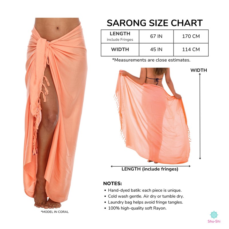 - STYLISH BEACH SARONG FOR BIKINIS: If you are looking for a comfortable wrap skirt for your holiday, SHU-SHI offers you solid color beach sarongs in bold colors. Stylish sarongs for women are the perfect accessory for the beach, cruises, resorts and holidays. Also great for brave men!