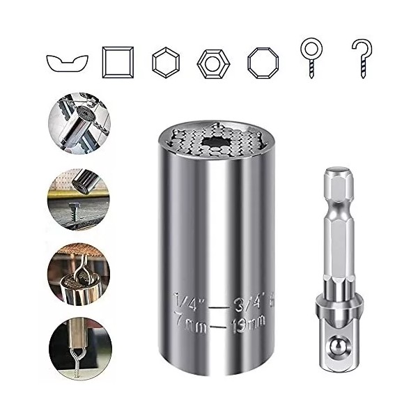 3.Enchufe universal: convierte tus herramientas al instante en un destornillador de enchufe para agarrar tuercas hexagonales, ganchos, tornillos de ojo y retraso, cabezales de perno y otros objetos de diferentes formas y tamaños. El adaptador de goteo de corriente incluido se puede conectar a taladros eléctricos o llaves de trinquete. Este agarre mágico es perfecto para bricolaje, construcción, mejora del hogar, reparación de automóviles, industria de fabricación y otros trabajos prácticos.