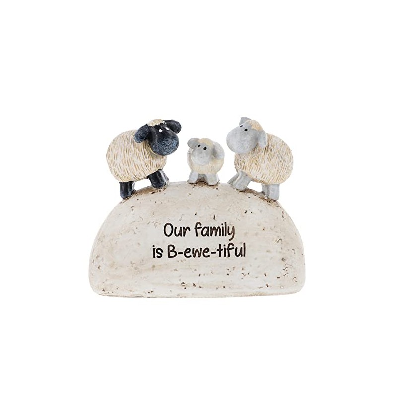 Shudehill Giftware Cute sheep resin figurines with different heartfelt messages on the stone effect base (Our family is B-ewe-tiful)