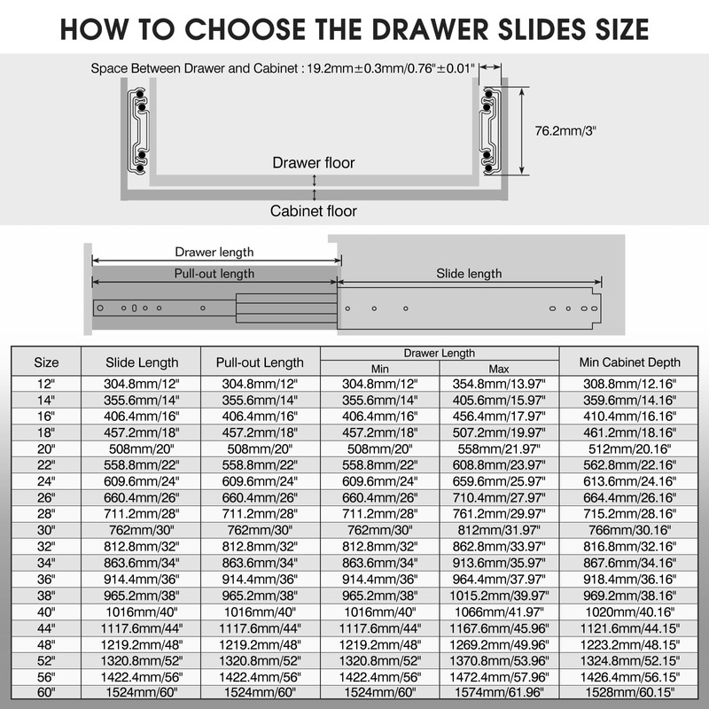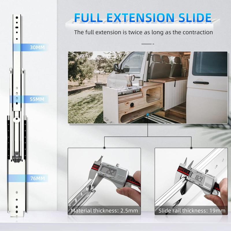 • 【440lb Load Capacity】— SHUHANG 76mm width heavy duty drawer slide is made of 2.5mm thick Cold Rolled Steel and ball bearing design allows it to bear up to 440lb load capacity.Sturdy enough to carry heavy loads.