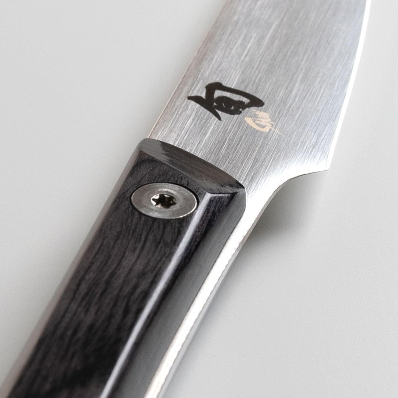 - PARING KITCHEN KNIFE: Like a chef knife, the Shun Kazahana 3.5-inch Paring Knife is multifunctional and essential in any kitchen. Full-tang construction provides durability and precision balance during any cutting action.