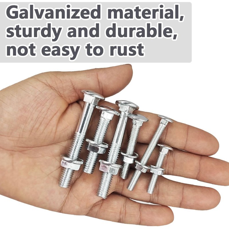 - RELIABLE FIXING These galvanized carriage bolts made of steel 4.8 provide professional quality and extreme resilience for any type of construction project.