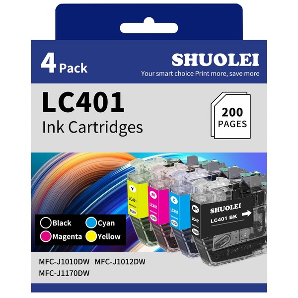 - 【High Page Yield】 Up to 200 pages per LC401 black ink cartridge, 200 pages per LC401 Cyan/Magenta/Yellow cartridges (with 5% coverage of A4 paper).