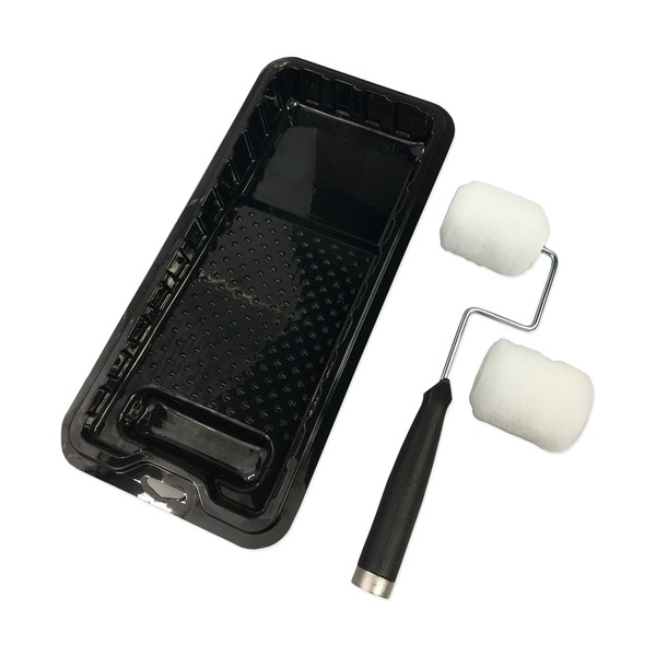 This Premium Select 4 Piece Trim Roller Set, includes two 3 inch White/Knit Fabric Roller Covers, a 3 inch Roller Frame & Plastic Paint Tray. The high density white knit fabric on these roller covers make them ideal for use with the new thicker Paint + Primer paints on the market today. The increased density of the fibers provides excellent paint pickup for more coverage between loadings and fewer trips to the paint tray. The 100% polypropylene core with patented thermo-bond technology not only seals the fibers to the core to keep them from releasing into the paint but also holds up under hours of use and can be cleaned again and again for re-use. Engineered for use with all paints and stains including oil and latex, these rollers perform to ensure a high-end look on flat and eggshell finishes in small spaces where a 9 inch roller simply won't fit.