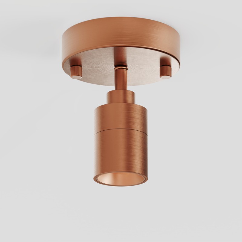 - Color & Features: This fixture has 1 spotlight head attached to an aluminum canopy, finished in Brushed Copper. Each shura spotlight can be individually adjusted 270° horizontally and 90° vertically, with full range dimmability.