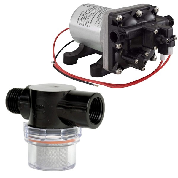 Shurflo 12 Volt RV Water Pump 3.0 GPM - 4008-101-A65 / E65 & 1/2" | RV Plumbing & Camper Water Pump | Twist-On Optional Pipe Strainer Bundle | Each Has A Unique Design - (Receive 1 Pump with Strainer)