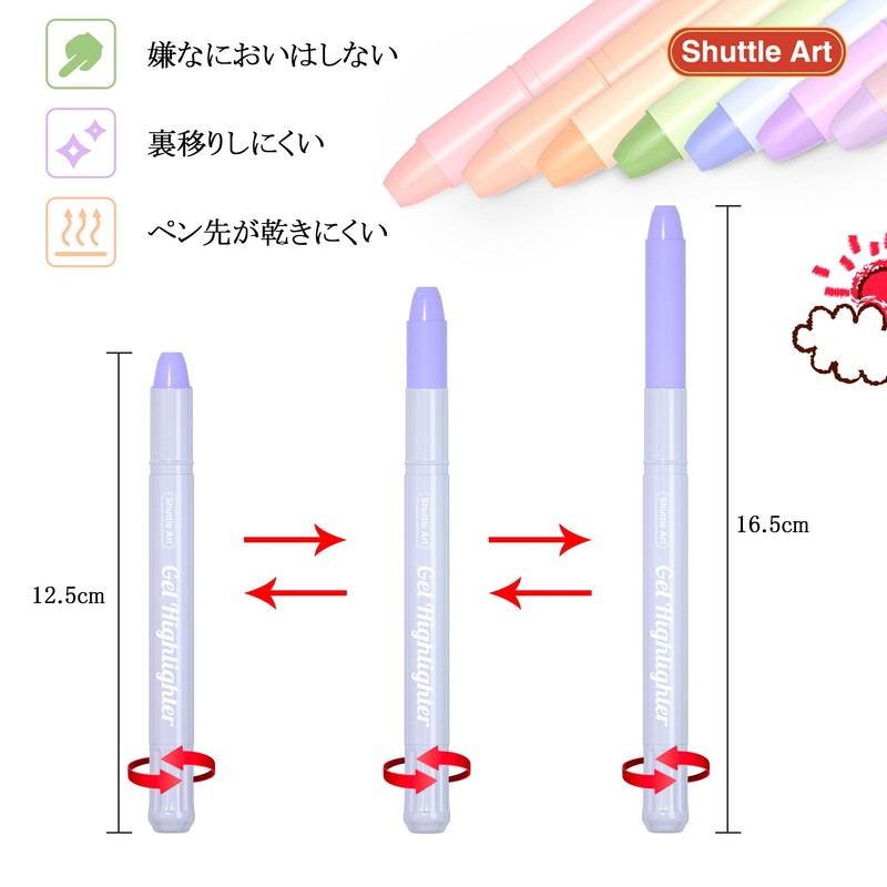 Shuttle Art 蛍光ペン 淡いカラー 12色セット 固形蛍光マーカー 蛍光クレヨン ソフト色合い 速乾 裏移りしにくい 繰り出し式 ゲルインク 透明ケース付き 教科書/ノート/カレンダー/手帳にマーキング 色塗り 子供 女の子 勉強 仕事 学校 オフィス 聖書用 収納便利
