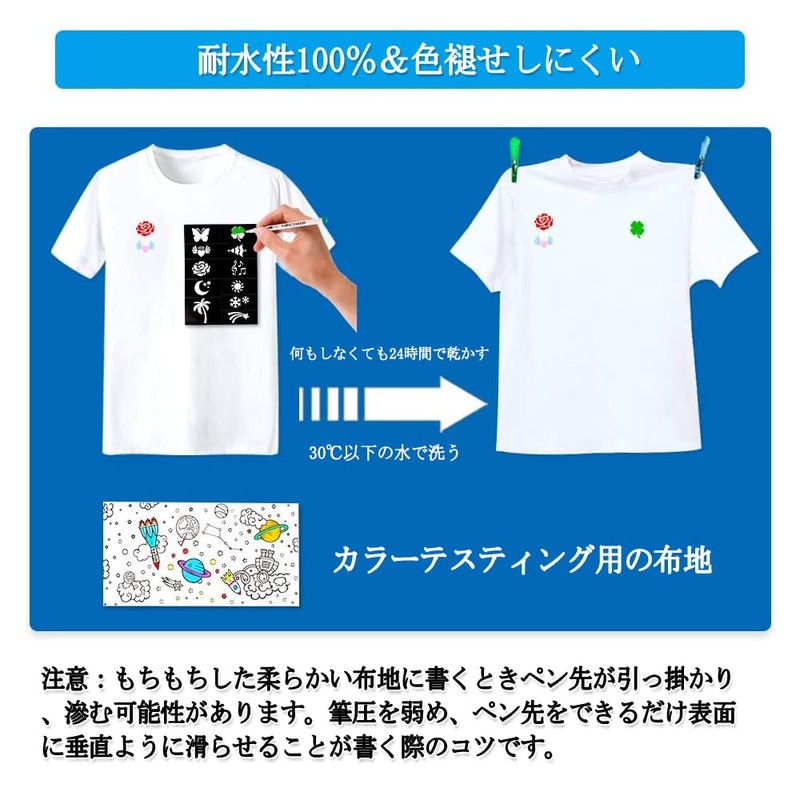 - 【水性インク】水性インクを使用していますので、布に書いてもにじみにくいです。洗濯を繰り返しても色褪せしにくく、耐水性、耐光性に優れています。