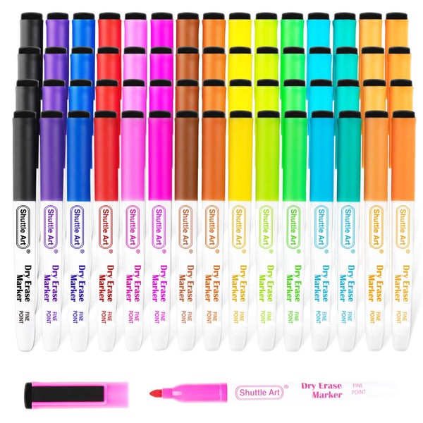 Shuttle Art ホワイトボードマーカー 消せるマーカーペン 60本セット 15色 磁気 マグネット付 イレーサー付 ホワイトボード用 ガラス/プラスチック/LED看板に書ける オフィス 作業現場 家庭 学校用