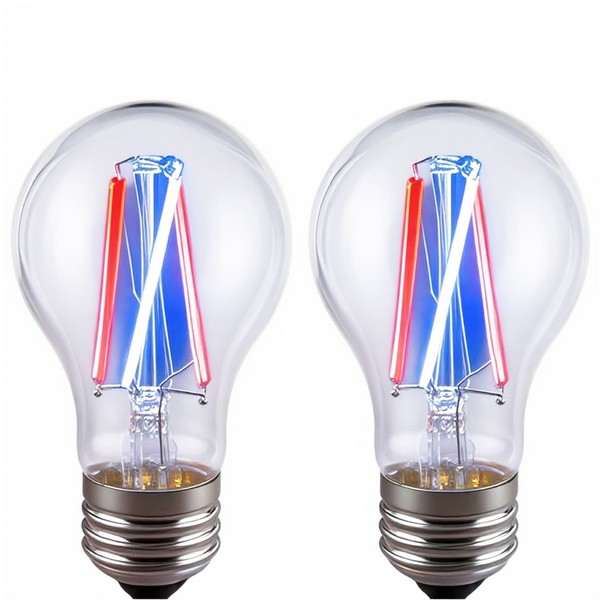 SHUWDKAR 3 Color Temperature LED Bulb E26 Medium Base 60W Equivalent, Red and Blue Color Changing Light Bulb 3CCT A19 LED 6W Clear Glass, Not Dimmable, 2 Pack