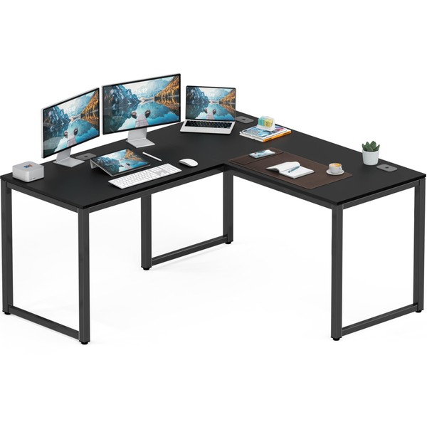 SHW 55 x 60 Inches Commercial-Grade L-Shape Corner Office Computer Desk, Black