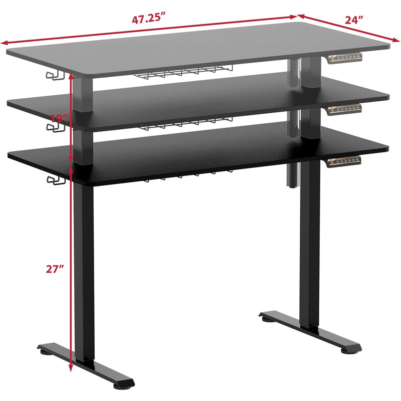 SHW Electric Height Adjustable Sit Stand Desk with Hanging Hooks and Cable Management, 48 x 24 Inches, Black Frame and Black Top