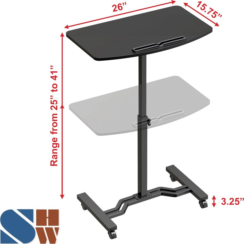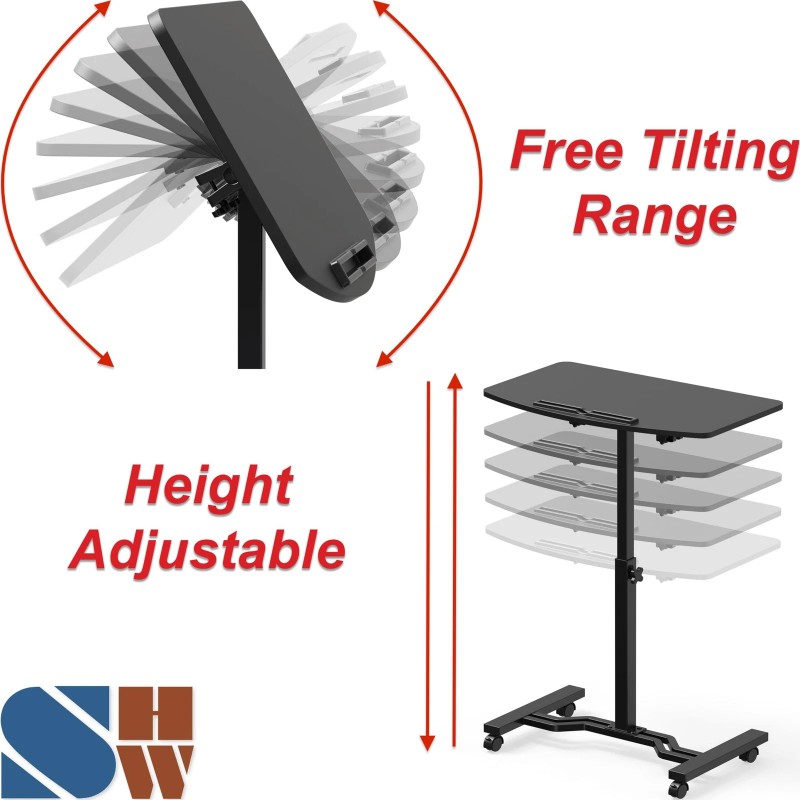 SHW Height Adjustable Rolling Laptop Cart with Tilting Desktop Black