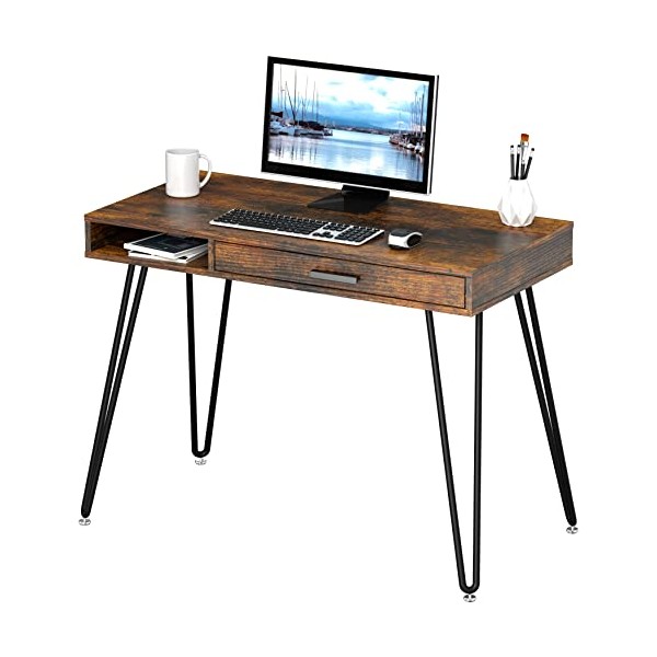SHW Home Office Computer Hairpin Leg Desk with Drawer, Rustic Brown