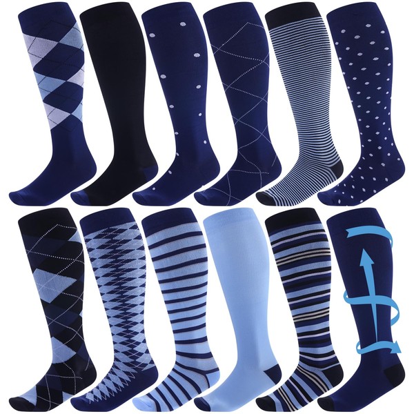 • Multi Style Design and Combination: you will receive 12 pairs of Men's dress compression socks, available in a variety of colors and styles; The styles are classic and fashionable, with novel colors and designs that can meet your daily wearing and changing needs; They are very durable and will not fade over time, keeping your feet in the best compression state long, providing you with a good wearing experience; At the same time, you can also share them with others