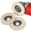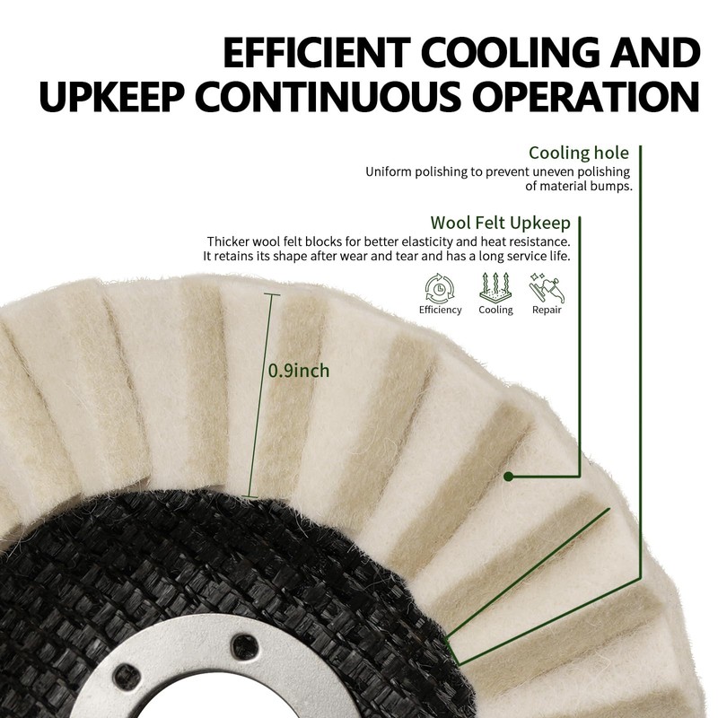 - ✅Upgraded Versione buffing wheel-- The type 27 wool polishing wheel disc are made with a fiberglass backing plate that effectively absorbs vibrations without smear during usage, bringing more stable and efficient grinding. Each Felt abrasive flap disc features 28pcs quality compressed wool blocks for finer polish and longer life due to its natural durability.