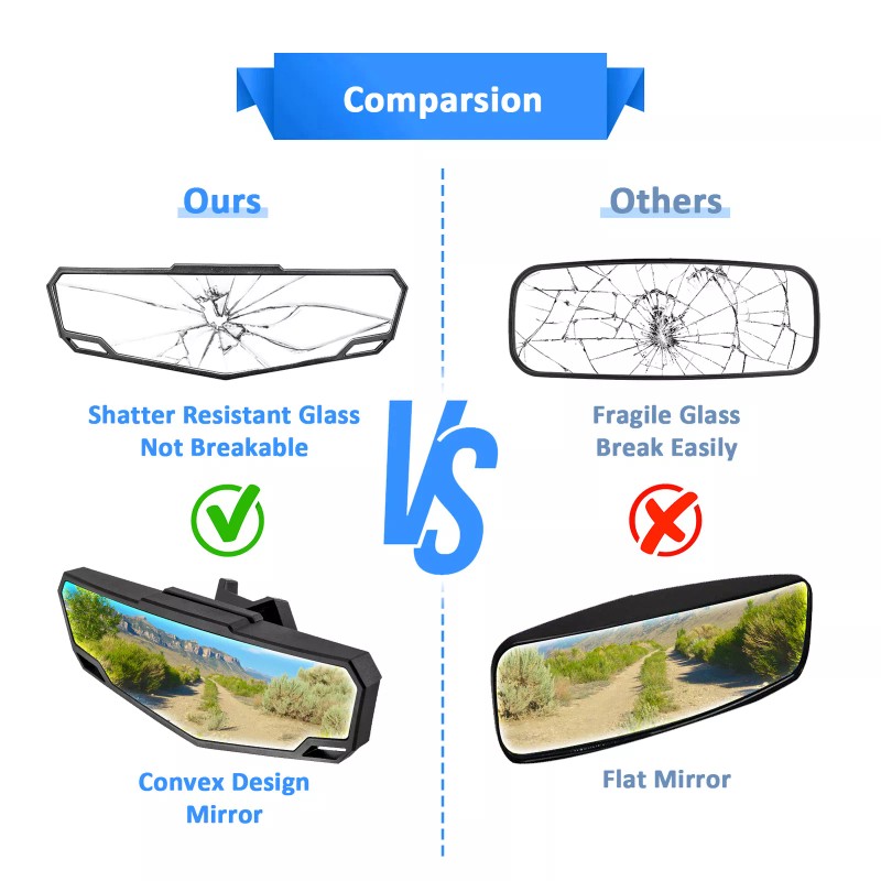 These UTV Mirrors are held in place by a flexible ball-shaped pivot, which is more convenient and allows you to adjust it at different angles, thus making you maximize and eliminate the blind spots.