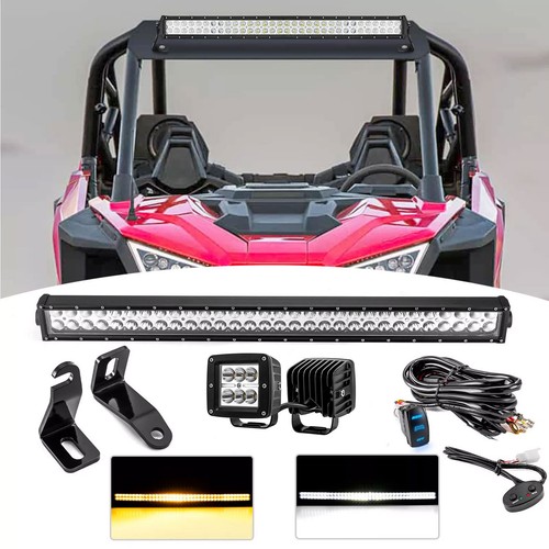 SI Strobe Amber/White 32" Light Bar Roof Mount+3" 24W Pods For Polaris RZR Pro XP