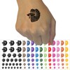 The sheet features 28 temporary tattoos in the design shown in a variety of sizes to suit your needs. Each size references the longest side of the tattoo: 2 inch (qty of 6), 1.5 inch (qty of 4), 1.25 inch (qty of 5), 1 inch (qty of 6), 0.75 inch (qty of 7).