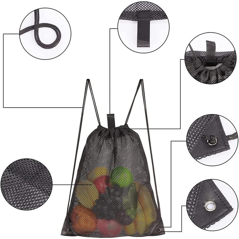 siawadeky Mesh Bag, Set of 2, Swimming Bag, Gym Bag, Gym Sack, Shoulder Backpack, Drawstring Bag, Beach Bag, Shoe Storage, Lightweight, Swimming, Club Activities, Exercise, Travel, Unisex, 15.7 x 17.7