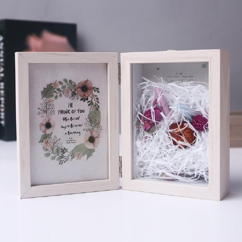 - 【DIY Free】: You can put photos of your family and loved ones, you can put your favorite scenery photos, or put watercolor, sketch, oil paintings. 3-sided side can freely hold flowers, pictures, small gifts, ornaments and more, in a small transparent box, you can arrange your favorite items